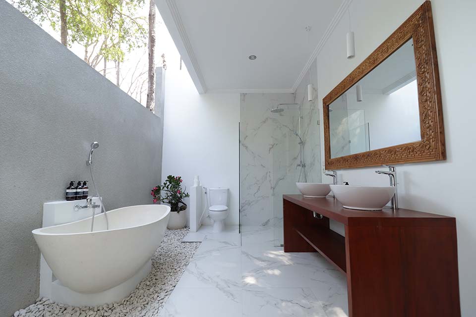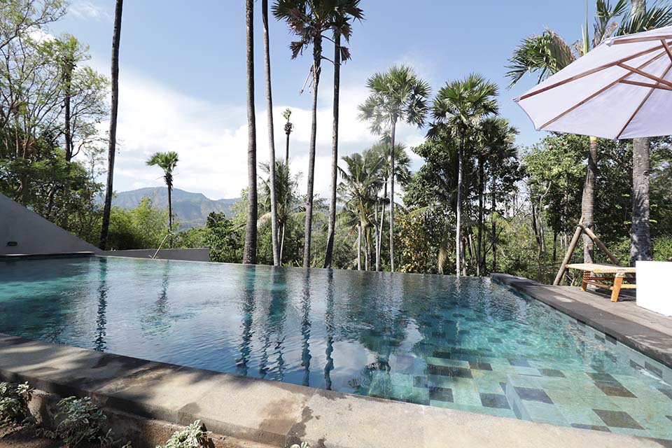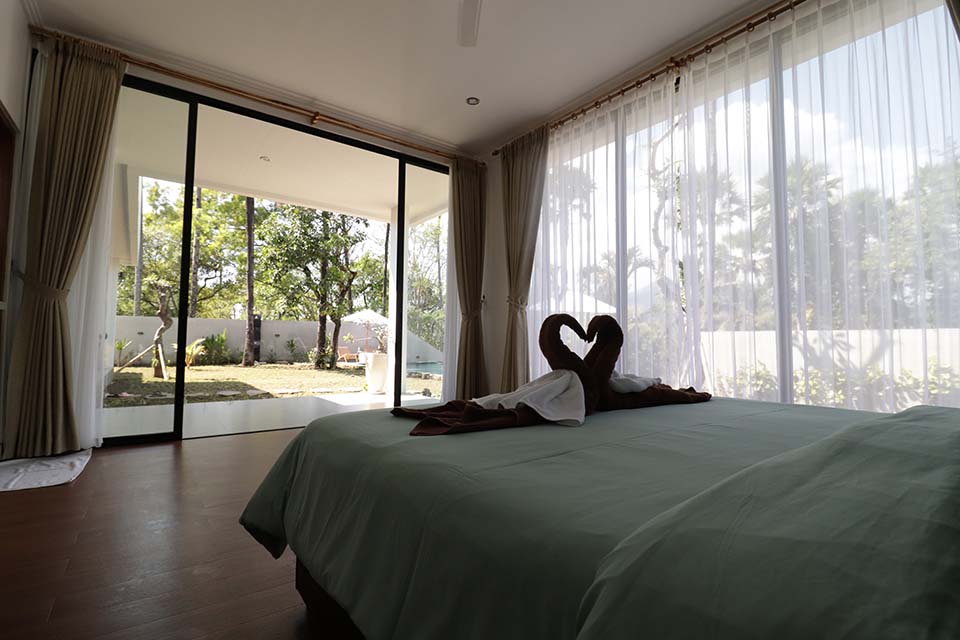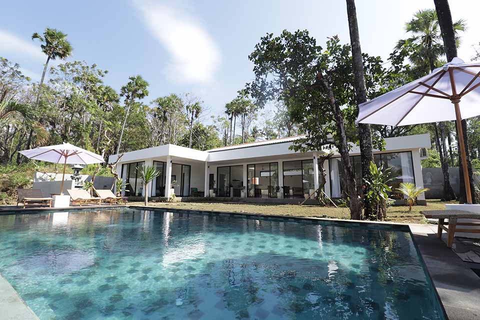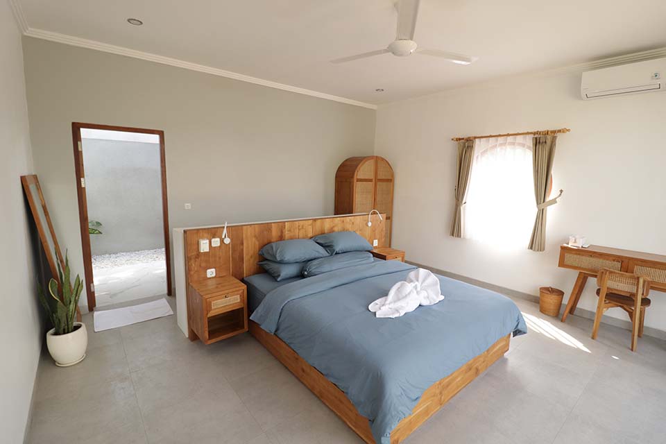 アメッドの中心地から少し離れた丘陵地帯に位置し、壮大なアグン山と手つかずの自然が広がる豊かな緑に囲まれた、究極のプライバシーを実現したヴィラ。ビンタンダイバーズから車で10分。敷地面積 750 m²には、大きなプライベートプール、リビングルーム、3つのベッドルームがあり、キッチンには便利な調理器具、基本的な調味料やカトラリーなどすべて揃っているので、食材さえあれば完全自炊が可能。また、食材の購入やプライベートシェフを依頼することも可能(有料)。もちろん、敷地内全域で無料Wi-Fiが利用可能、全室エアコン、各ベッドルームにはバスルーム(温水シャワー)を完備。